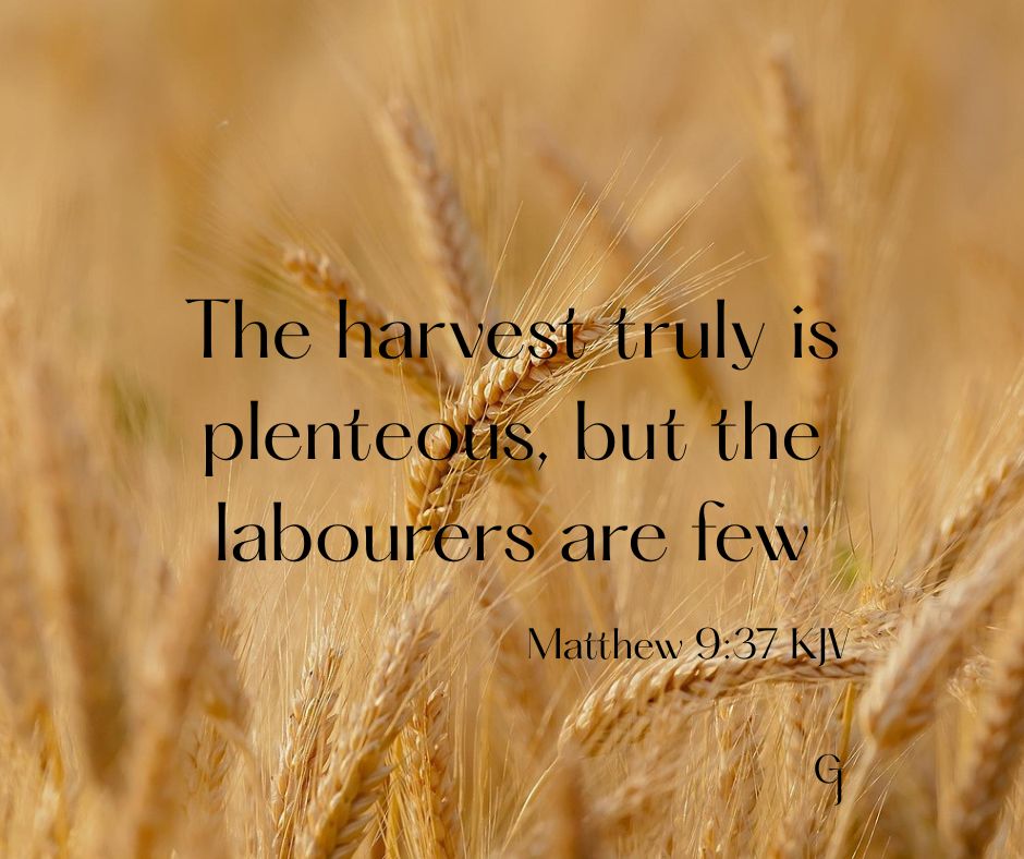 Then saith he unto his disciples, The harvest truly is plenteous, but the labourers are few; Pray ye therefore the Lord of the harvest, that he will send forth labourers into his harvest (Matthew 9:37-38).