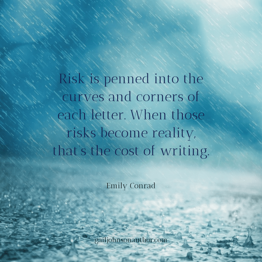Risk is penned into the curves and corners of each letter. When those risks become reality, that’s the cost of writing. ~ Emily Conrad #amwriting #quote