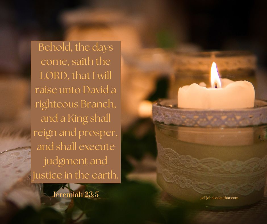 Behold, the days come, saith the LORD, that I will raise unto David a righteous Branch, and a King shall reign and prosper, and shall execute judgment and justice in the earth. Jeremiah 23:5 (KJV)